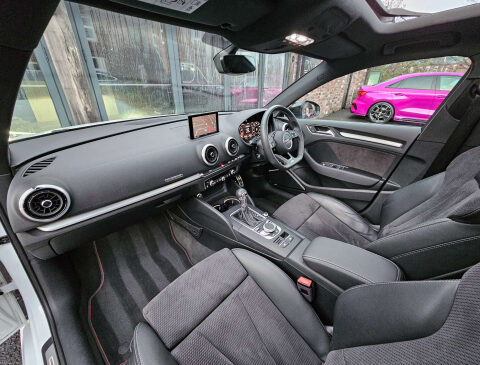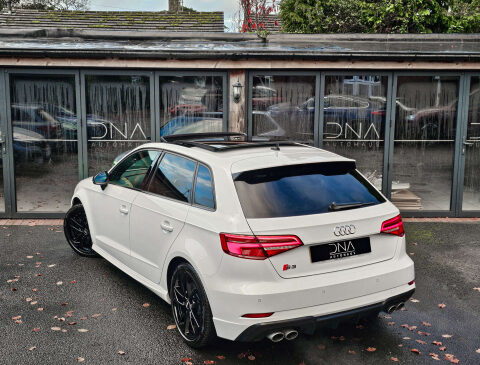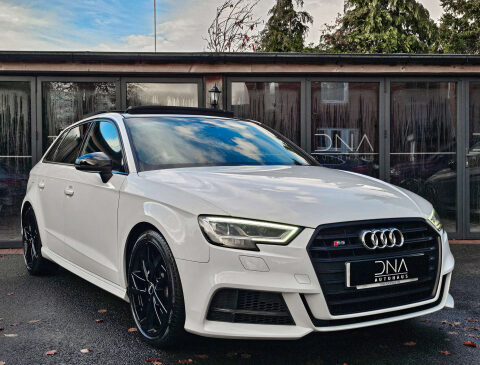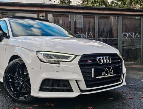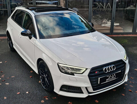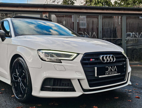 DNA Autohaus Ltd are proud to present to you this stunning 2019 (68 REG) Audi S3 Black Edition. SERVICE HISTORY: Full Audi Service History - Most recent October 2025, 1 remaining Oil Service with Audi Service Plan. Brand New Brake Discs and Brake Pads replaced all round November 2025. COLOUR: Ibis White. SPECIFICATION: Bang & Olufsen Sound System, Panoramic Glass Sunroof, Audi Virtual Cockpit, Technology Package, Audi Smartphone Interface, MMI Navigation, DAB Digital Radio, Voice Control, Cruise Control with Speed Limiter, Privacy Glass, 3-Spoke Flat Bottom High Multi Function Sports Steering Wheel, Black Styling Pack, 19" 5 Arm Audi Sport Alloys, Audi LED Headlights, Split Folding Rear Seats, Heated Seats plus much more. KEYS: 2 Keys. EXTERIOR: Very good condition with a very few age related chips. INTERIOR: Very good condition.